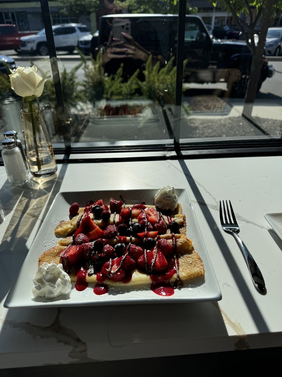Cute spot in downtown Farmington! I was happy to finally be able to try this place out and to have a new brunch option. Our server was so sweet and the food came out quick. I had a delicious vanilla latte and our breakfast was pretty tasty. Happy to have this nearby. They do need to add a reservation option or online wait list as it gets busy in the weekends and there is no waiting area.