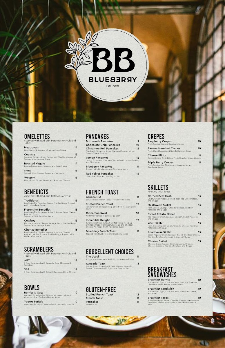Blueberry Brunch offers a comforting and approachable menu that suits relaxed mornings and leisurely weekend gatherings. The selection centers on classic brunch dishes with thoughtful touches, making it easy to find something familiar yet satisfying. Whether you're stopping by for a casual weekday breakfast or settling in for a friendly weekend meal, the menu supports a calm and inviting atmosphere.