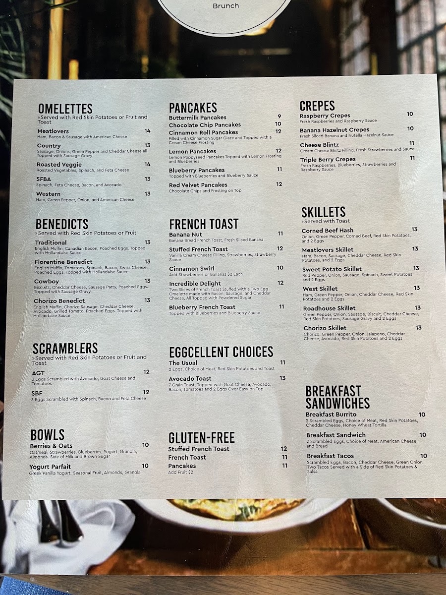 The offerings range from hearty omelettes and skillets to lighter, fresh options like avocado toast or fruit plates. Pancakes and French toast are prepared with care, featuring flavors like cinnamon roll and banana nut to complement a perfectly brewed coffee or a salted caramel latte. These dishes are ideal for those moments when you want to enjoy simple pleasures in a welcoming environment.